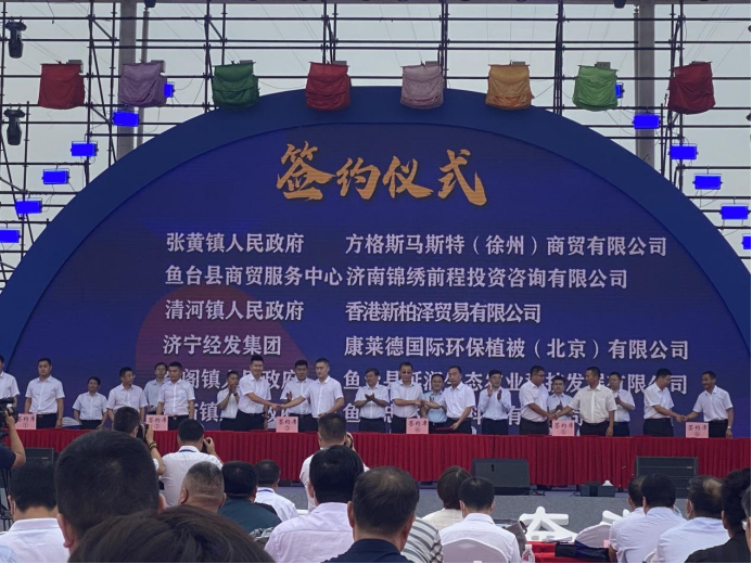 ????? 6月18日,2021年第五屆中國?魚臺(tái)龍蝦節(jié)、首屆中國(魚臺(tái))綠色稻米博覽會(huì)暨重點(diǎn)項(xiàng)目簽約儀式在魚稼里廣場(chǎng)舉行,濟(jì)寧經(jīng)發(fā)投資集團(tuán)與康萊德國際環(huán)保植被(北京)有限公司簽署項(xiàng)目合作意向書。